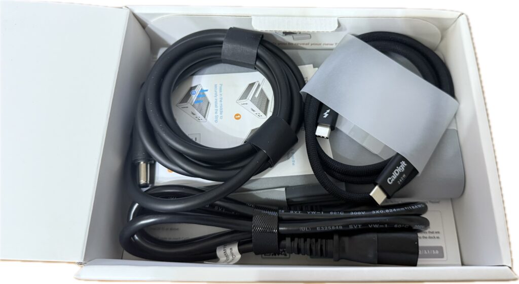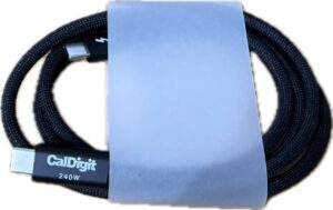 Thunderbolt 5のケーブルにはCalDigit 240Wの文字が入っています。